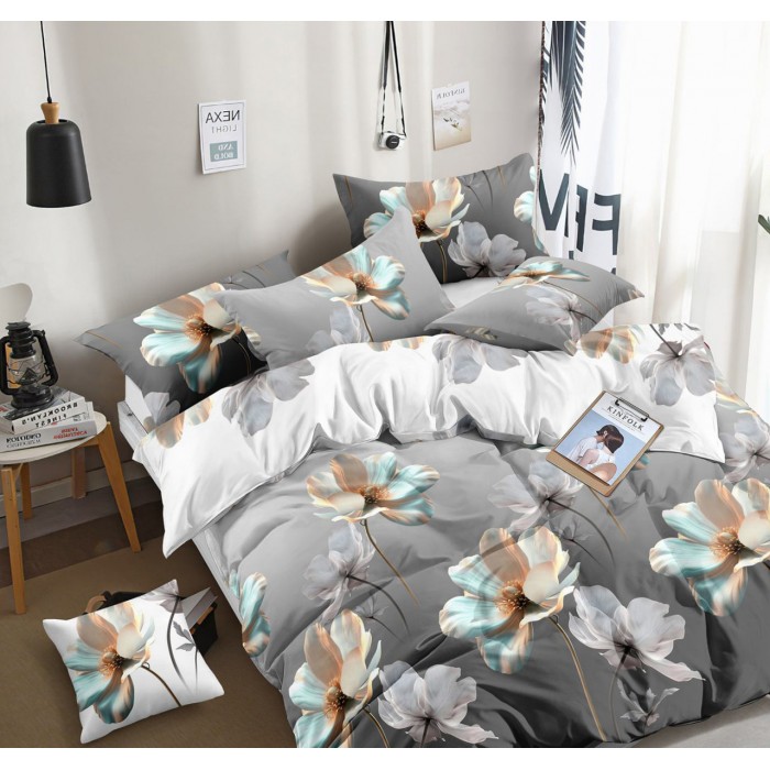 Двоспальний комплект постільної білизни євро 200*220 ранфорс на блискавці (24198)