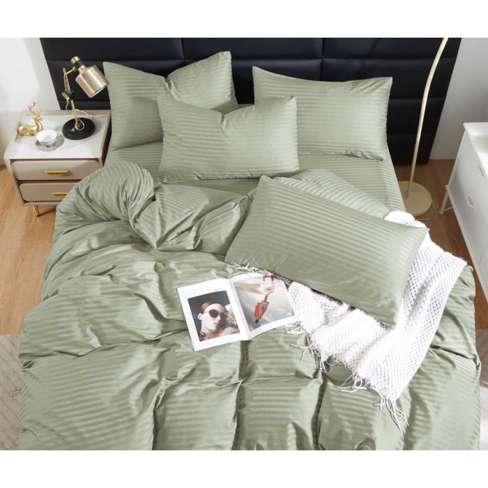 Постільна білизна двоспальна 180*220 страйп-сатин люкс на резинці (23134)