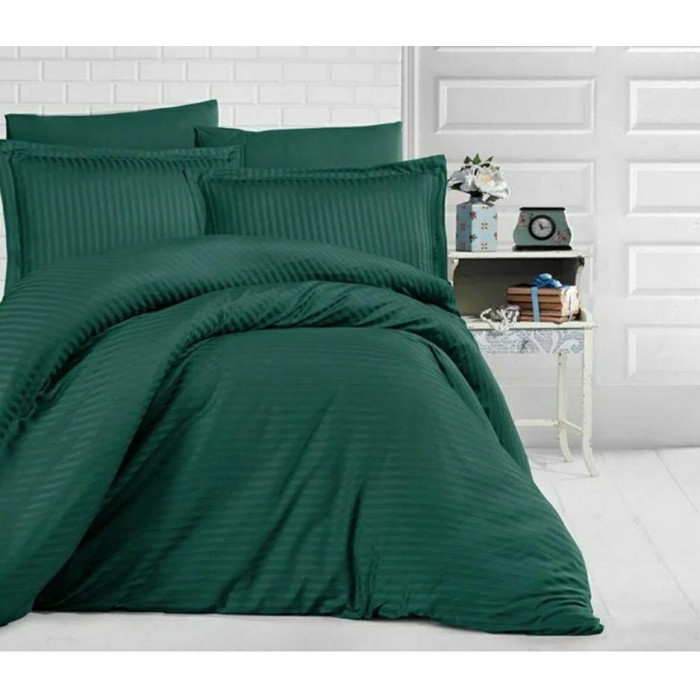Постільна білизна сімейна страйп-сатин люкс на резинці (20630)