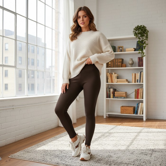 Стильная модель лосин в рубчик шикарного шоколадного цвета, утеплена флисом. Идеально садится по фигуре.