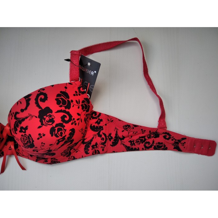 Бюстгальтер Biweier гладкий с цветочным принтом push up красный 85В 3807