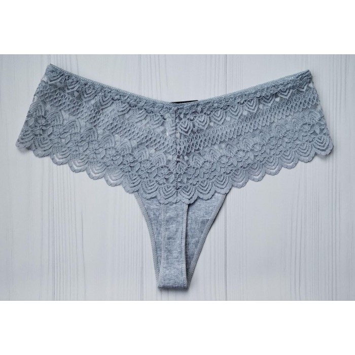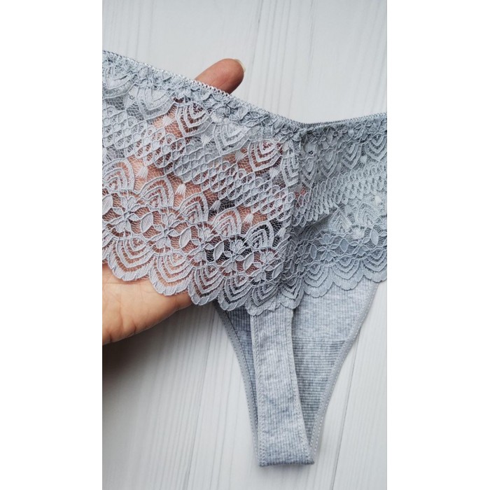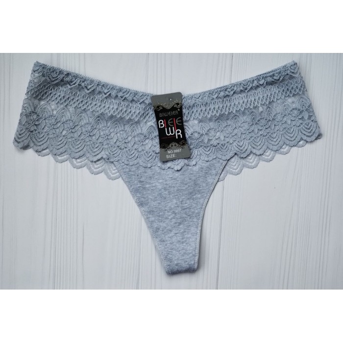 Трусики стринги хлопок Biweier высокая посадка кружево серый XXXXL 52 9997