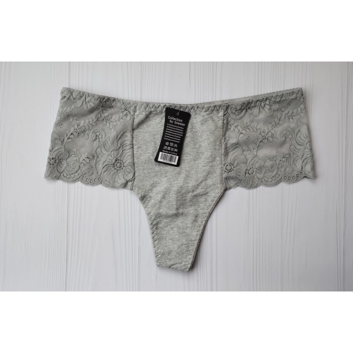 Трусики стринги Biweier высокая посадка хлопок серый XXXL 56 3022