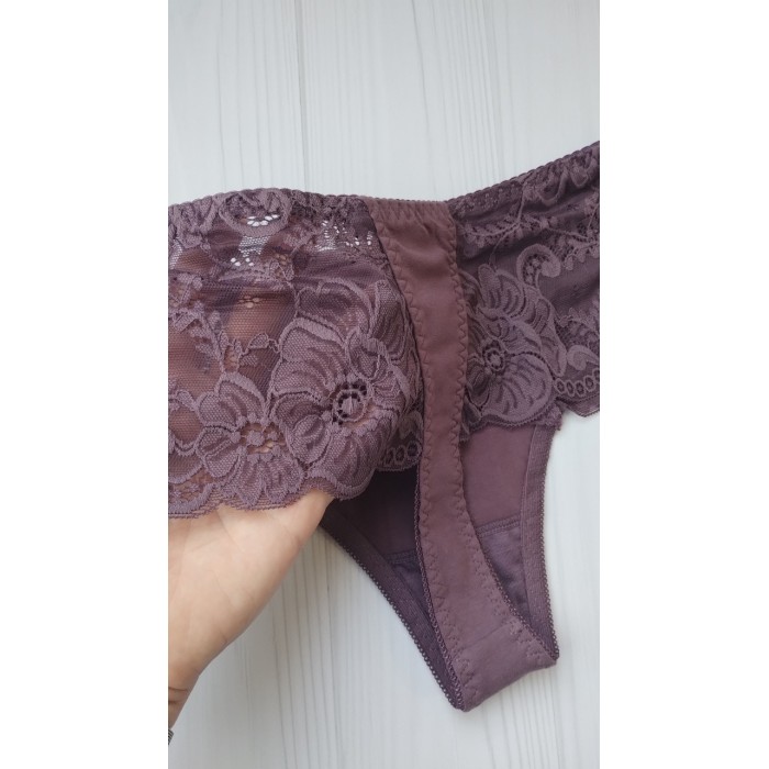 Трусики стринги Biweier высокая посадка хлопок сливовый XXXL 56 3022