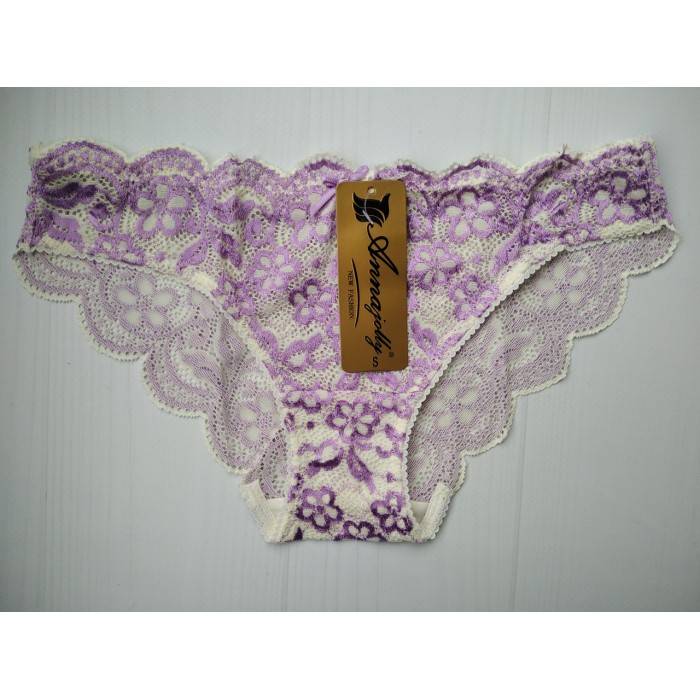 Трусики Annajolly кружевные молочный с сиреневым S 7314