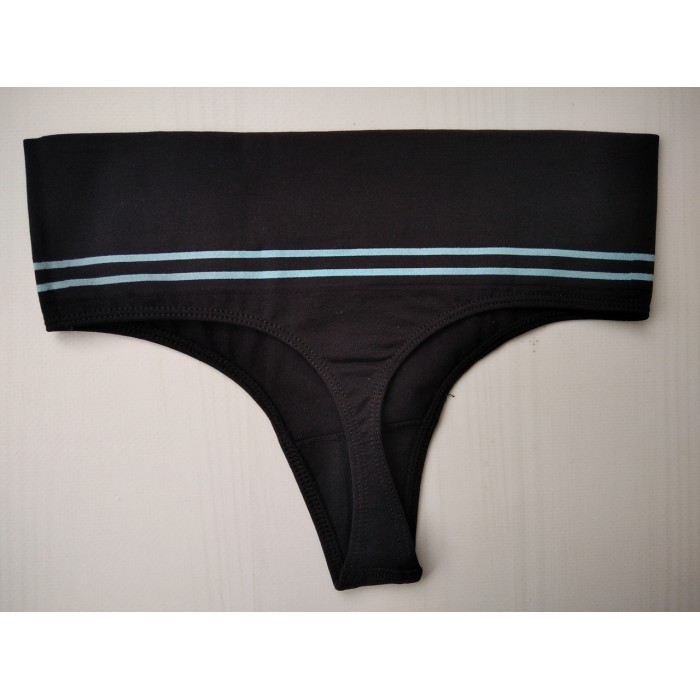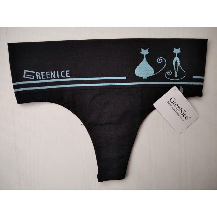 Трусики стрінги Greenice безшовні широкий пояс блакитний кіт чорні S\M 2362