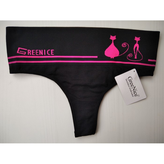 Трусики стрінги Greenice безшовні широкий пояс рожевий кіт чорні S\M 2362